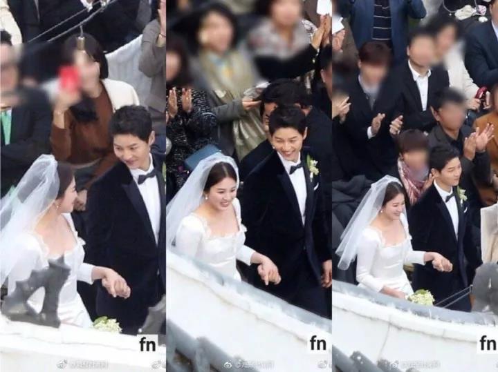 婚禮在室外舉行,氣溫較低且沒有陽光,宋慧喬的婚紗很單薄,新郎宋仲基一直握著新娘的手,不時搓手取暖,嫁給愛情的樣子超甜~
